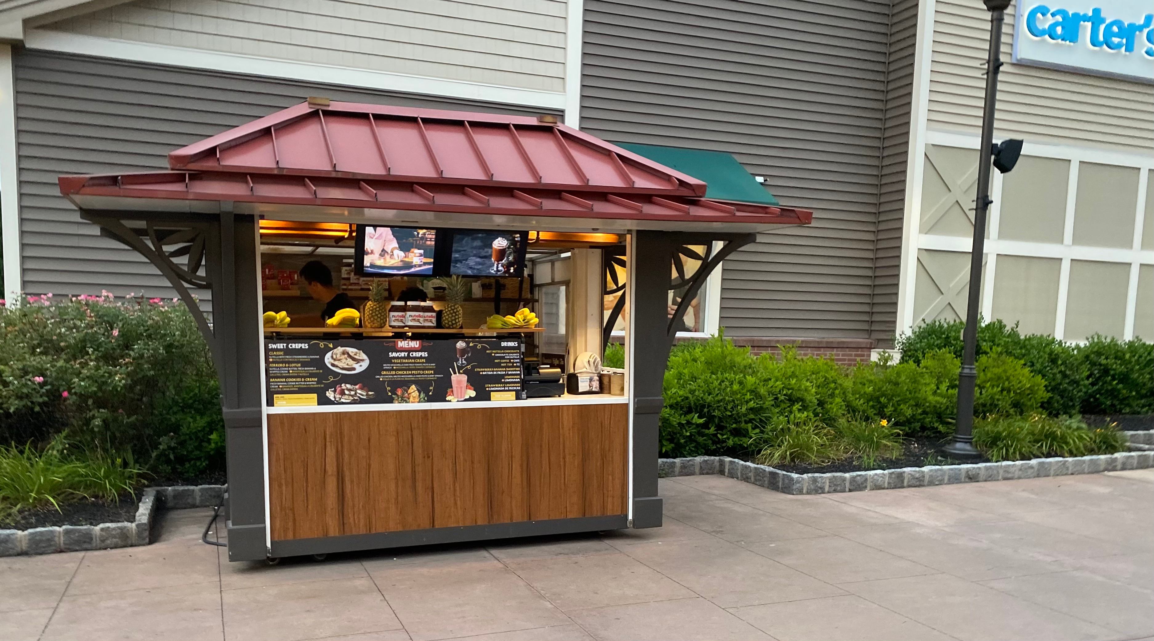 Here at Azra's crepe stand we sell freshly made crepes with a choice of strawberries, bananas, Nutella, and biscotti butter. If you're feeling a savory crepe we provide mozzarella, tomatoes, chicken, spinach, pesto and garlic herbs. While shopping in the outdoor mall of the Woodbury commons, you can stop by at any time, order, and we make it right there on the spot for you to take away and enjoy. Our strawberry and banana smoothies are made with frozen fruit and almond milk. The delicious strawberry lemonade is made with fresh frozen strawberries blended with lemonade. In the winter our most popular drink is the hot chocolate with melted Nutella added inside. We can't wait to see you here:)